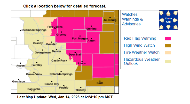 01/14/26 6:50pm: Well folks its shaping up to be a pretty cold weekend and its looking cold the beginning of next week, especially for the front-range (and areas east of the Cont. Divide).