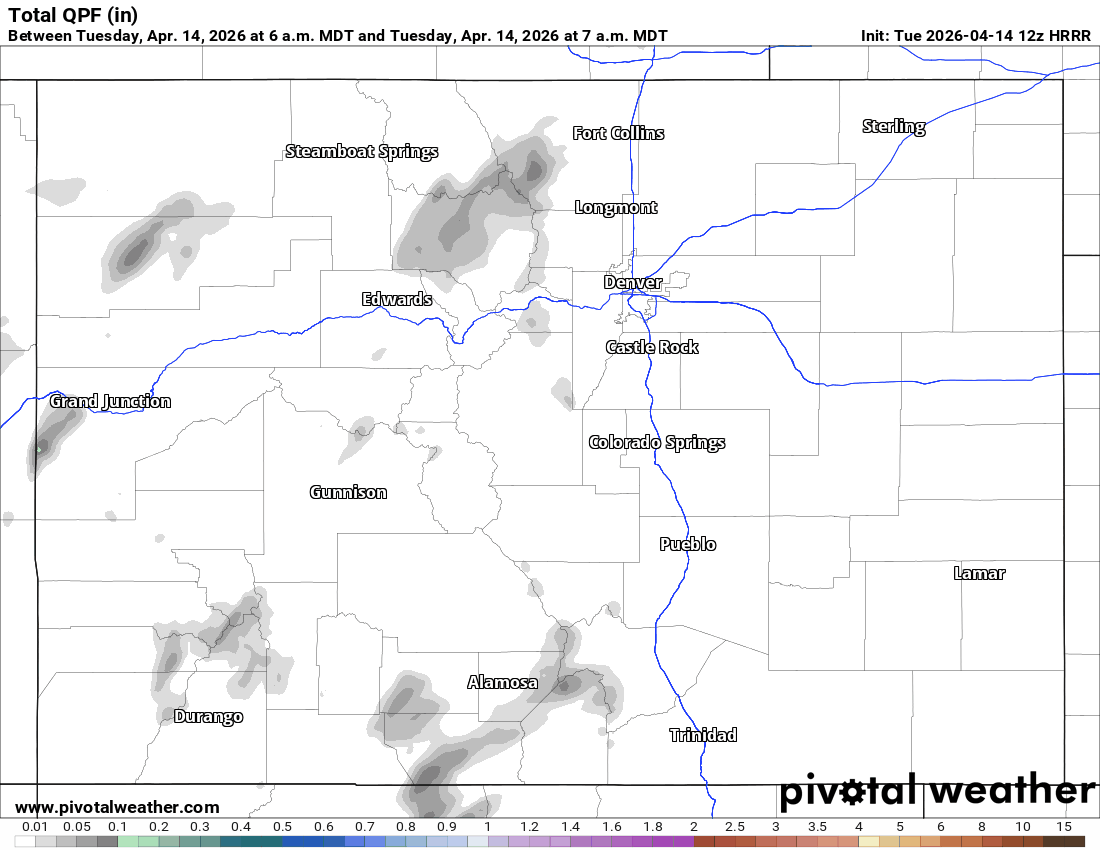 For Den/Bou and the front-range a few rain showers between 3pm-9pm, with best chances east of DIA (due to the westerly downslope flow).