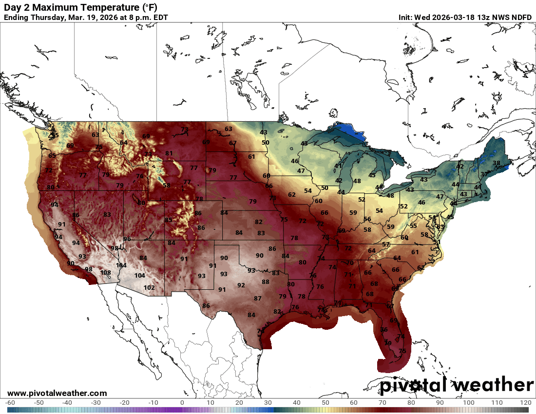 03/18/26 8am: Morning. Its warm out there already (62 at my house in Westminster already). We are staring down the pipe at a historic heat-wave through Saturday. And really when I run models out, I see an overall hot and mostly dry pattern for the next 2 weeks with just a couple storm systems mixed in.