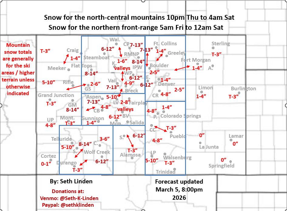 Snowfall map for the Thu/Fri storm (its looking weaker for northern CO)