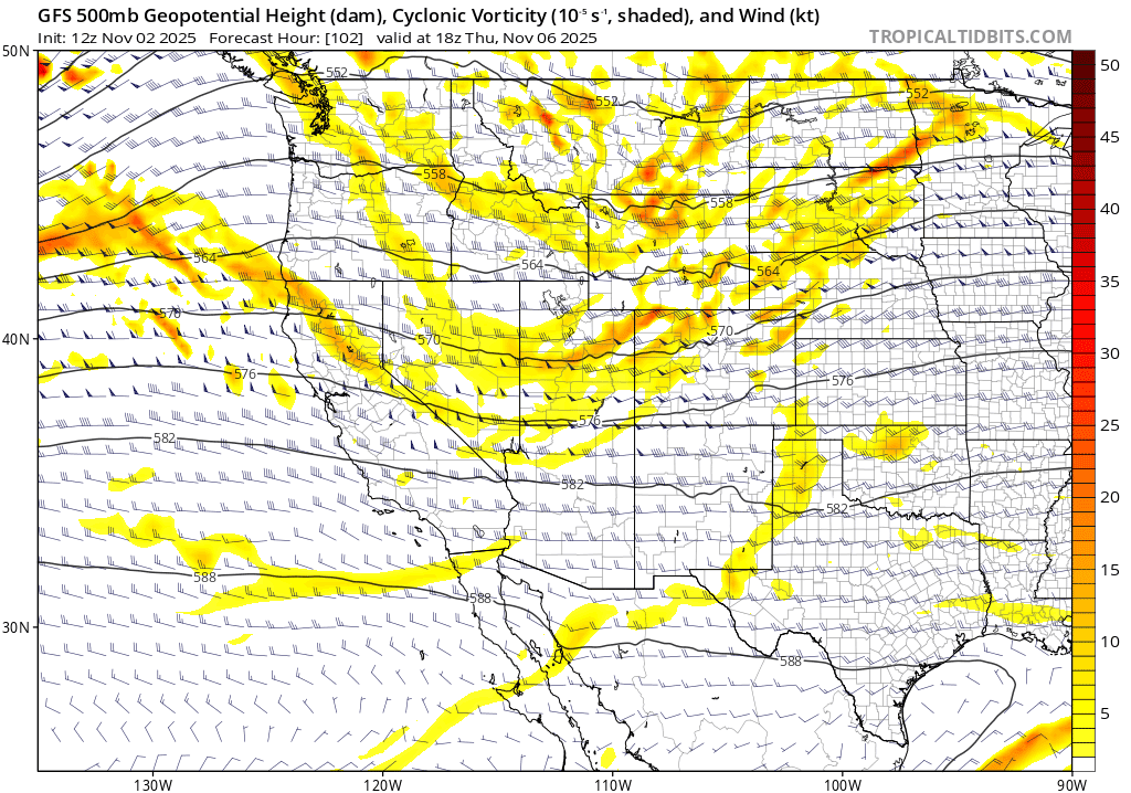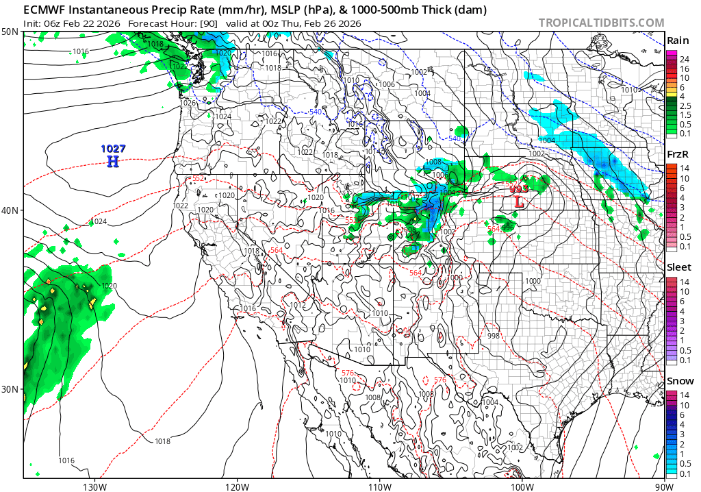 Back to a southern track for the Wed/Thu storm less snow for Den/Bou