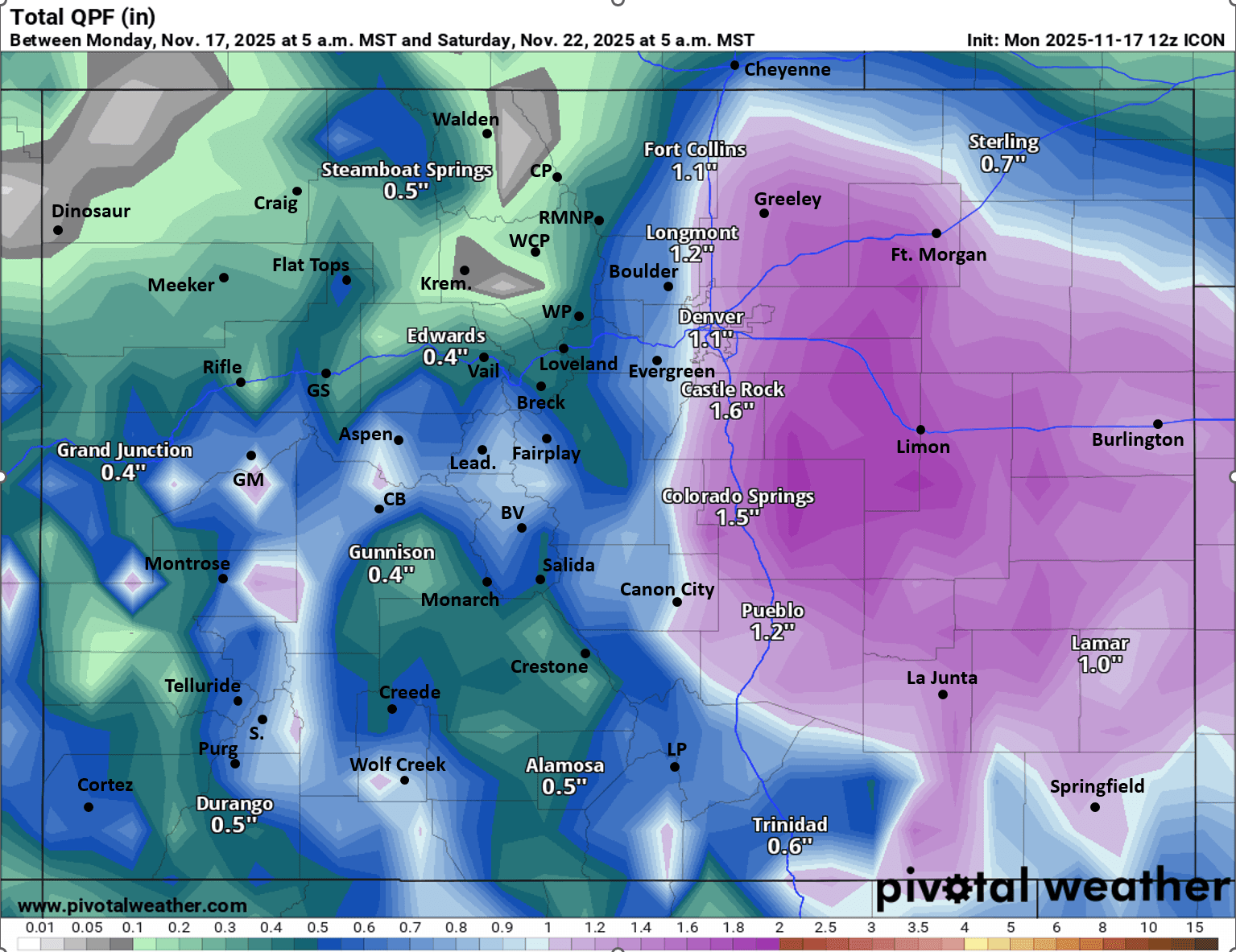 Also looks like the mountains will get more snow Thu into Fri afternoon with biggest impacts expected in southwest CO / San Juans (in terms of heavier snowfall).