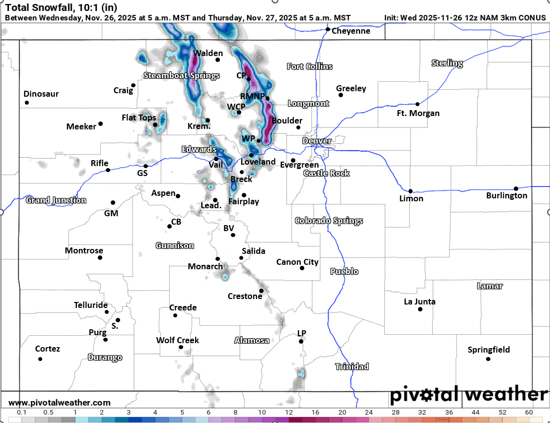 Anyway, Some more light snow coming to the north-central mountains today and tonight, mostly from 12pm today through 4am Thu. Looks like 1/2" to 4" for some of the ski areas, mountains passes and higher terrain favoring higher parts of Summit Co and also near IPW, RMNP, Cameron Pass and Park Range (north of Steamboat).