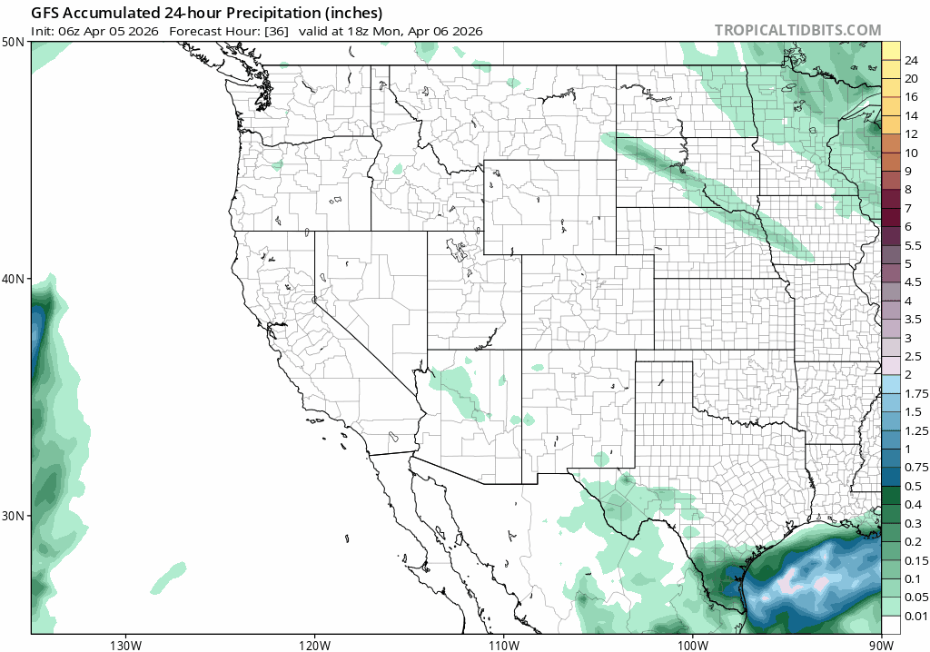 04/05/26 10:30am: Happy Easter and Passover. I hope you are having a good weekend. Lets take a look at what we can expect weather-wise this week and beyond. It looks fairly active, albeit on the weaker side initially, then maybe some bigger storms as we head towards mid-April. Here are some things I'm seeing right now: