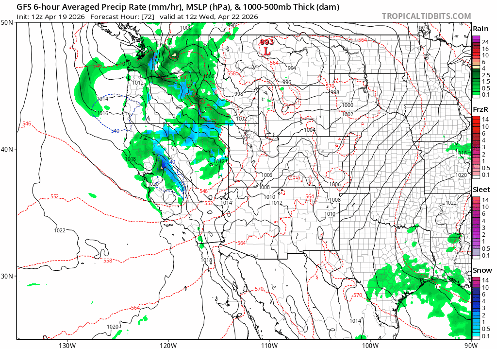 Bottom line is we are looking at an active weather pattern with several storms in the forecast mostly from Fri (04/24) through Fri (05/01).