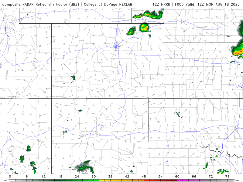 08/18/25 9am: Morning, its Monday. We have some weather to talk about. Better thunderstorm chances for the front-range and eastern plains today as a little short-wave rotates up across the state (part of a dirty ridge). Then back to hot and mostly dry conditions for Tue-Thu. Then we are looking at a pattern change for the end of August into September with cooler and wetter conditions.