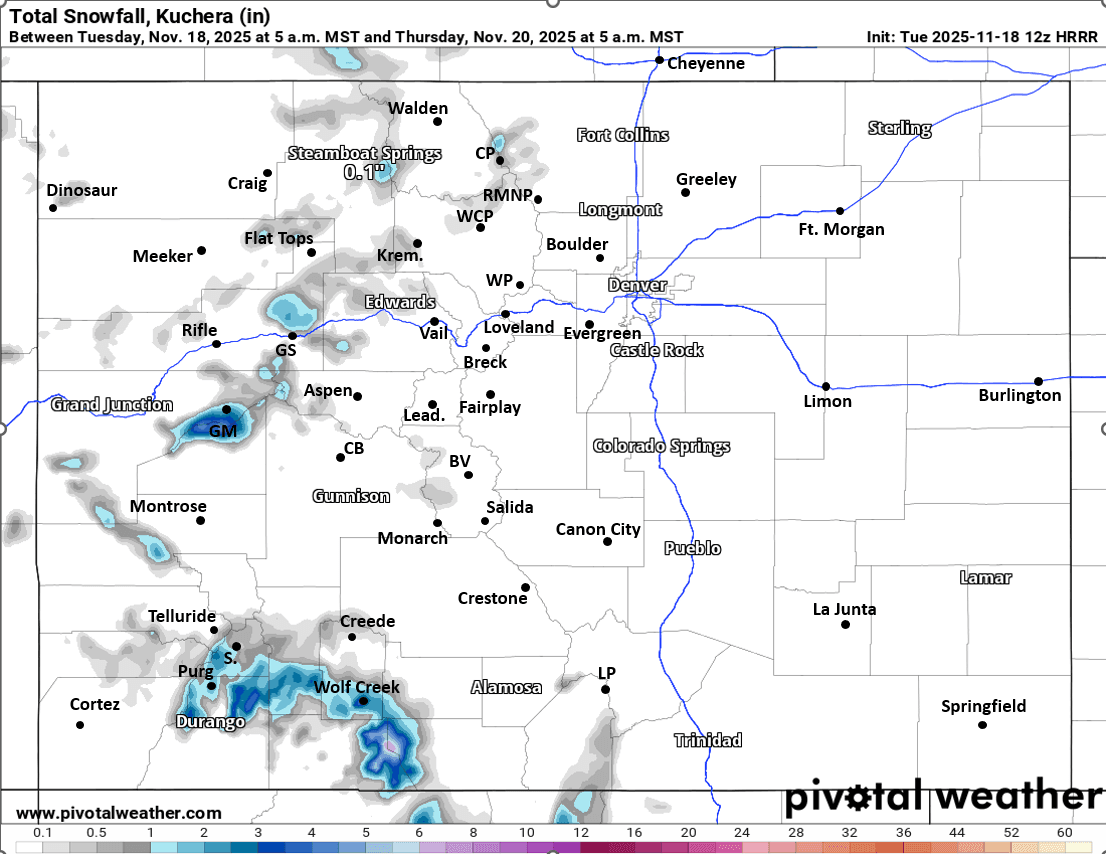 Also some heavier snow expected over southwest CO / San Juans Thu into Fri