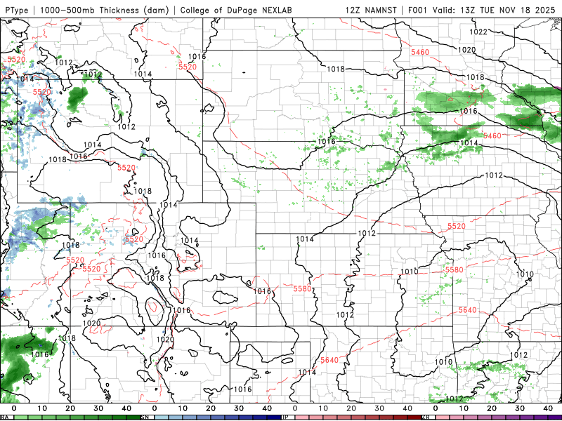 Rain/snow develops along the southern front-range (Trinidad to Pueblo to Springs) between 11am-2pm Thu