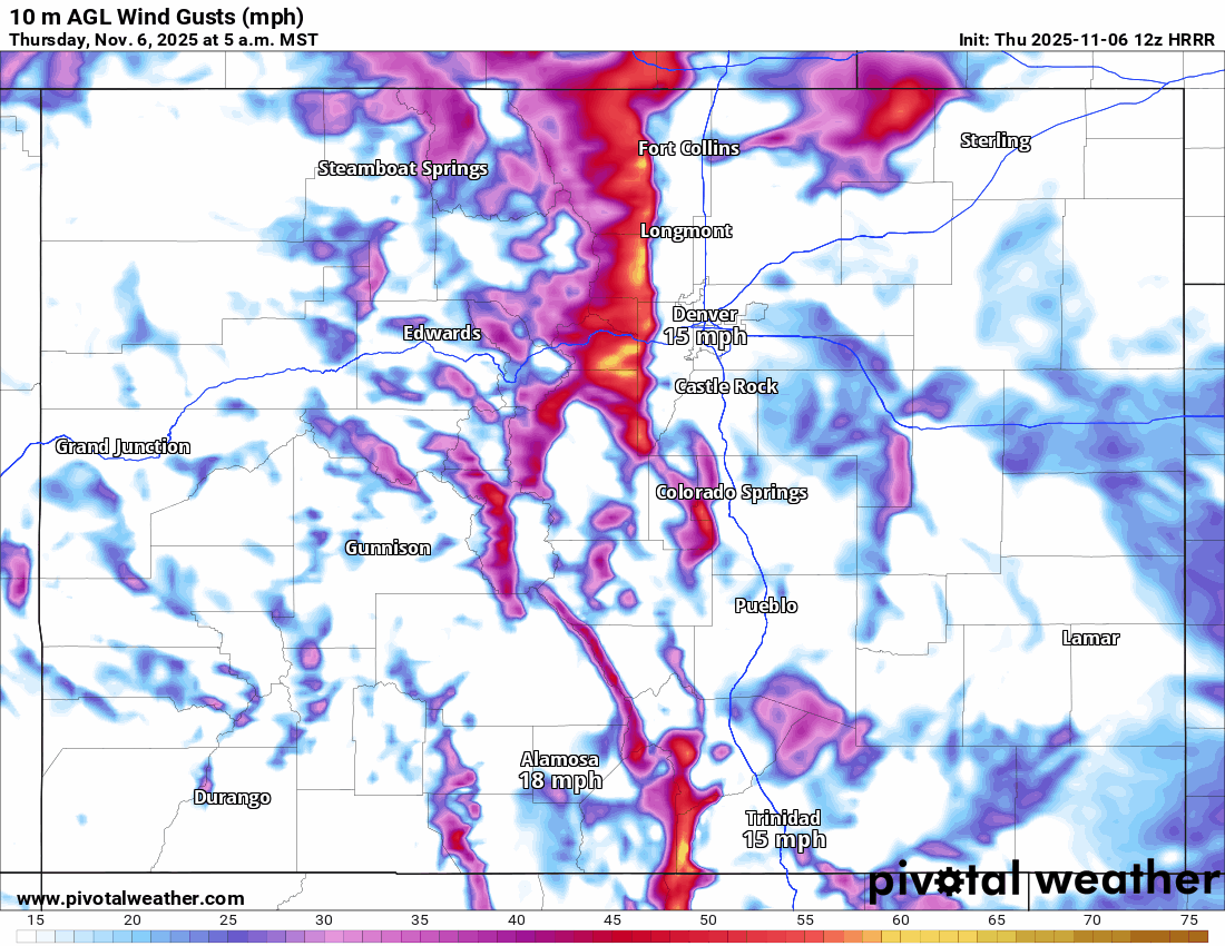 Also windy Fri night into Sat mid-day with northwest wind-gusts of 20-50mph, strongest along/east of the Cont. Divide (Front Range mountains)