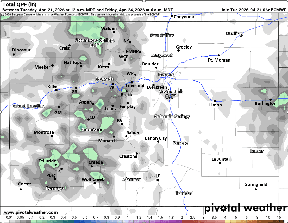 So just a few rain/snow showers over parts of the mountains on Wed afternoon / evening. Best chances over northern CO (closer to Park Range).
