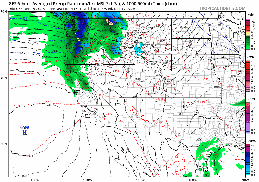 12/15/25 8am: Morning, its Monday. We do have some weather to talk about (that's not warm temps and sun, lol). Models show a series of short-waves coming in on northwest flow impacting the state starting Wed evening into Thu, Thu into Fri and Sat into Sun, several rounds of light to moderate snow for the mountains and it will turning windy and colder for the mountains towards the end of this week / weekend.